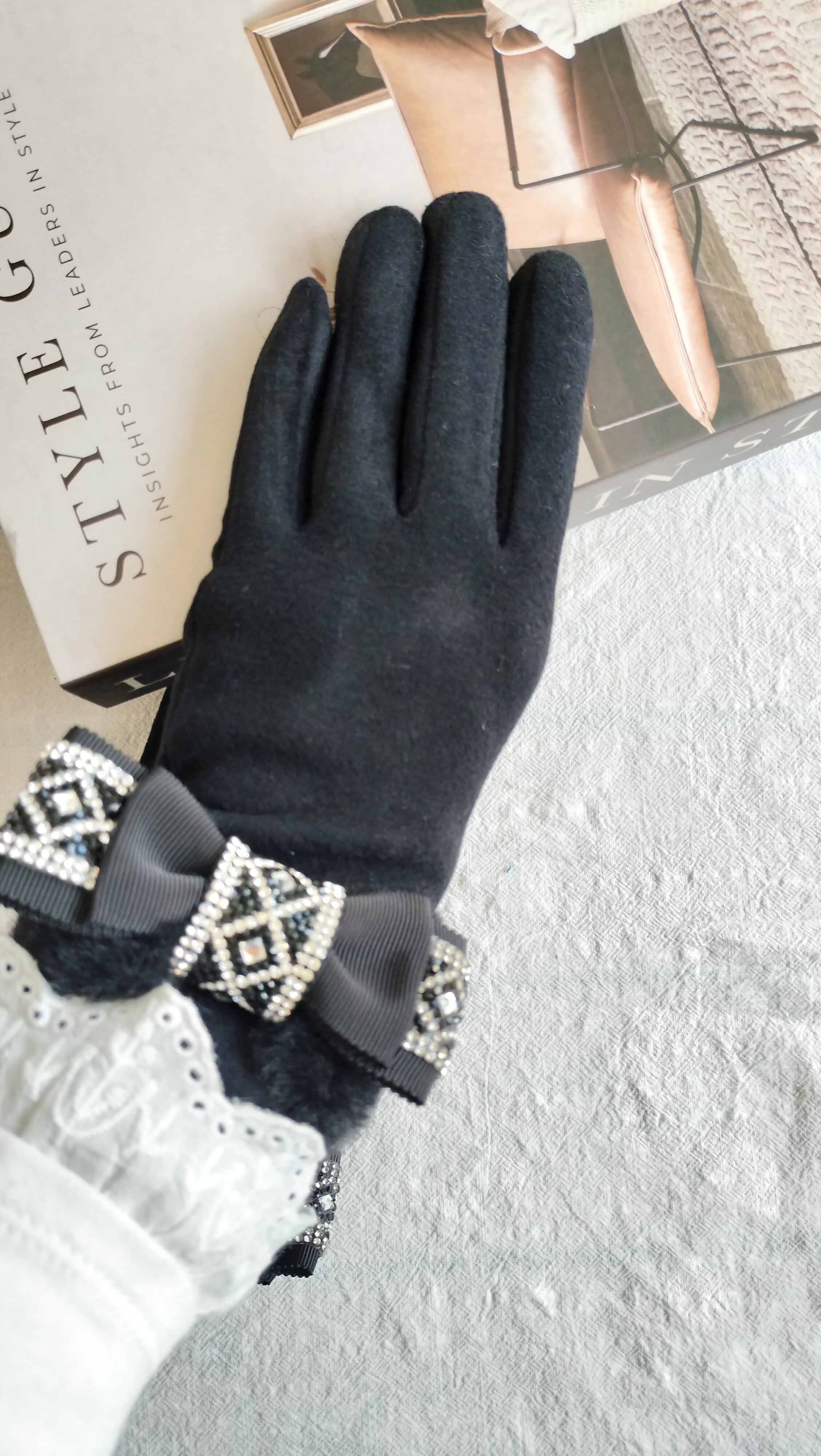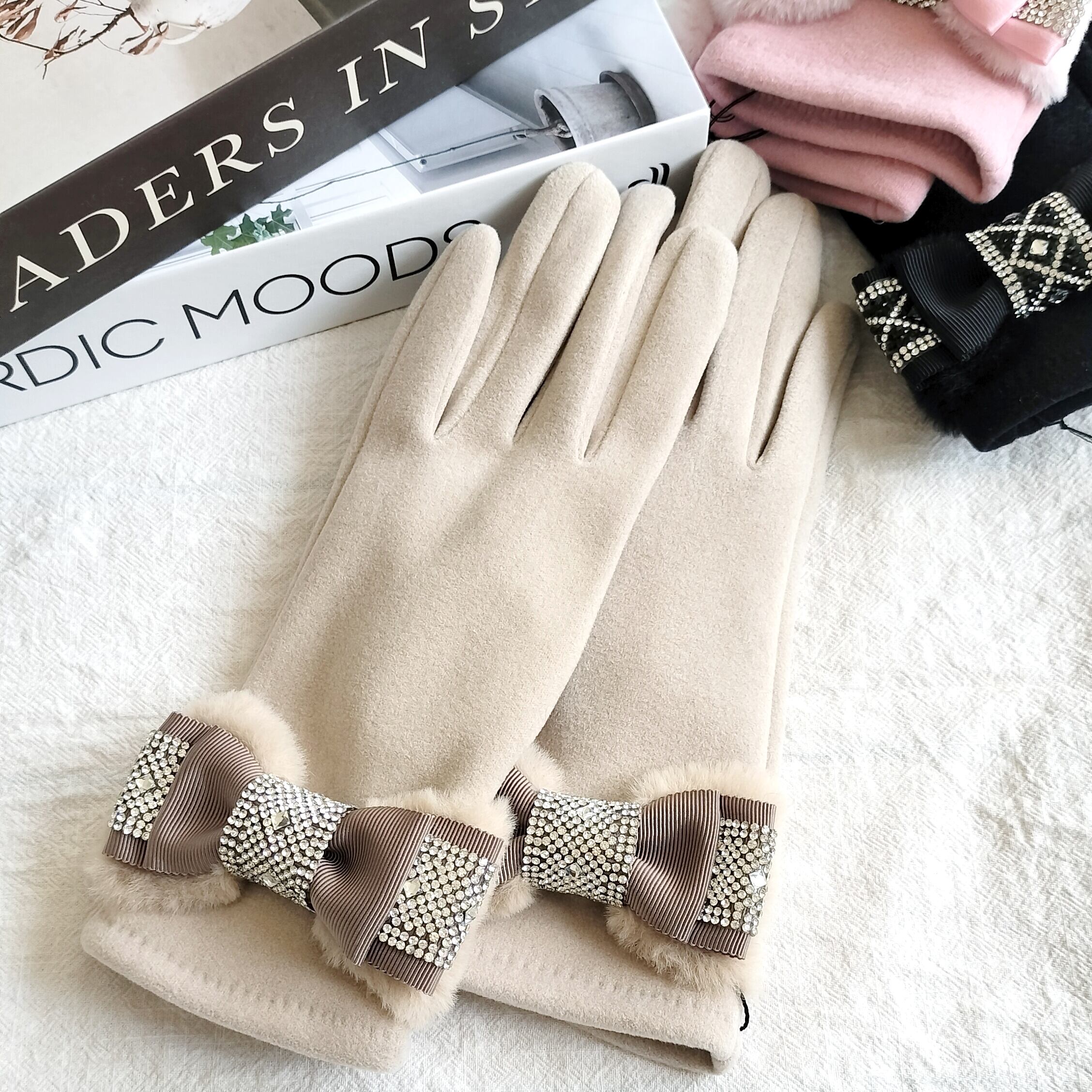 スマホ対応 エコファーリボン手袋